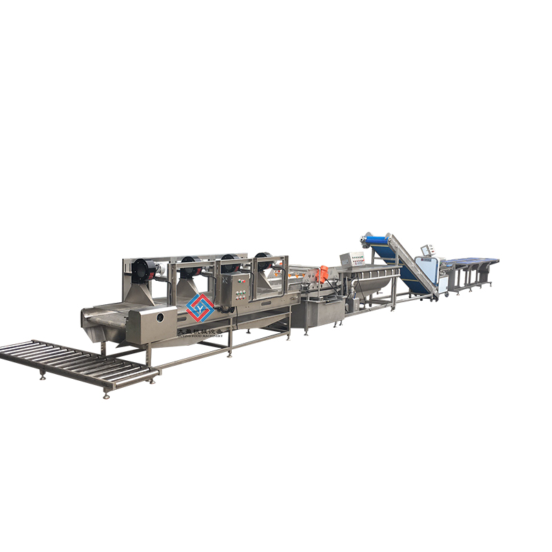 蔬菜初加工生產(chǎn)線/流水線一般是由多個設備共同搭配使用的,主要可以用于葉菜清洗、切割等,數(shù)序一般為原料提升、蔬菜挑選輸送、切菜機、提升機、渦流清洗去雜、震動吹干等,不會損傷到物料,是目前蔬菜加工和中央廚房的理想設備。