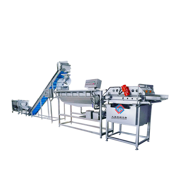 蔬菜清洗加工生產(chǎn)線/流水線適用于凈菜加工配送中心、食堂加工、中央廚房和企業(yè)單位食堂的葉菜的前處理清洗工作,能夠完成挑選、去雜物、切割、輸送、風(fēng)干瀝水和脫水的功能。